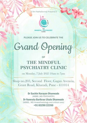 At The Mindful Psychiatry Clinic in Pune, we believe in holistic and evidence-based treatment approaches that support mental and emotional well-being. Our clinic provides a safe and supportive environment for individuals seeking help for psychological concerns. We also offer remote consultations and secure online mental health support to make quality care easily accessible. Explore our website to learn more about our services, schedule appointments, and take the first step toward better mental health with the best psychiatrist in Kharadi, Pune.